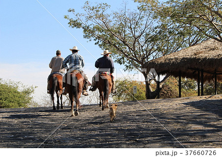ソチカルコ遺跡を行くカウボーイ メキシコ