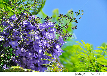 ジャカランダの木が青紫色の花を咲かせています。 学名はJacarandaです。