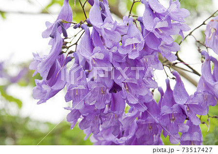 ジャガランダの花が雨に濡れています。