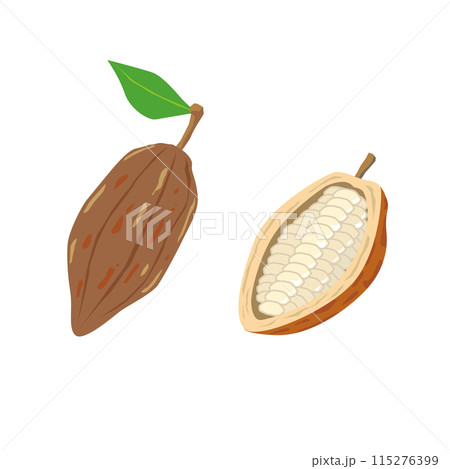 カカオポッドとカカオの実のイラスト