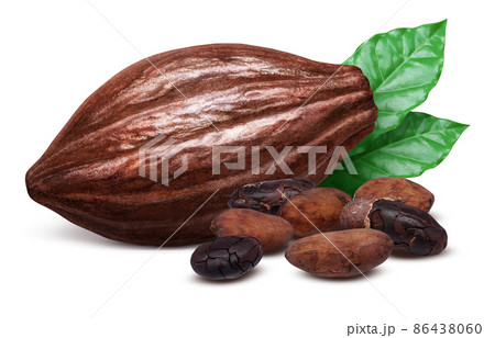 cocoa pod and cocoa seed isolated on white background