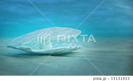 In the ocean, a pearlbearing oyster rests on the sandy seabed
