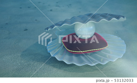Mother of pearls underwater. Sea shell underwater with pearl inside and red velvet pillow. Oysters