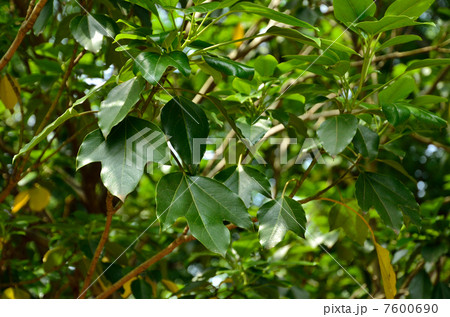 自然 植物 カクレミノ、葉の変異が多彩な樹木。大きめの葉をいっぱいつけて涼しげな木陰を作ります