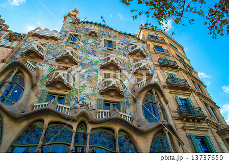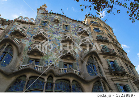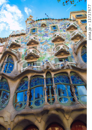 晴れた日のカサバトリョ ガウディ建築 バルセロナ スペイン