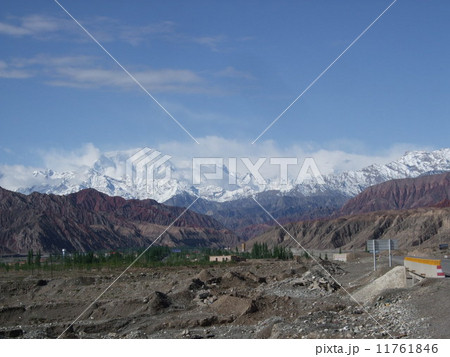 カラコルム・ハイウェイとムスタグアタ山(7546m) 中国新疆ウイグル自治区クズルス・キルギス自治州