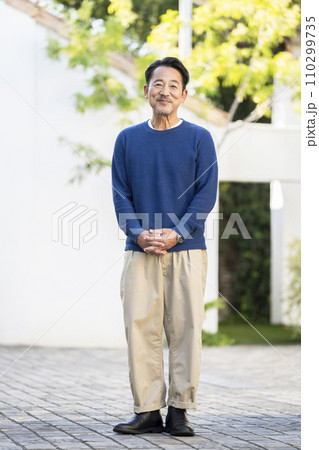 カメラ目線で笑顔の50代の男性 全身 ポートレート