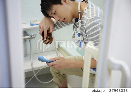 洗濯をする男性