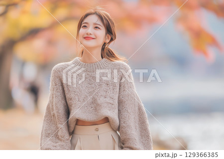 女性の秋冬ファッションコーディネート全身(縦向き)