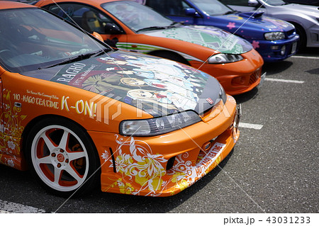 痛車カーラッピング車萌車キャラクター若者イベント派手華やか秋葉系デザイン装飾おたく文化ファン活動広告