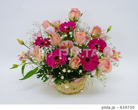 花 フラワーアレンジメント 植物 薔薇 バラ 紅いバラ カーネーション かすみ草 カスミ草 桃色 春 母の日 ブーケ 花束 プレゼント 生花 生け花 赤色 紅い 情熱 愛 コピースペース アレンジメン