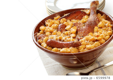 鴨のコンフィー添えカスレ