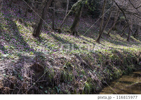 低値や低山の森林、森林内の湿気の多い場所で春に花を咲かせる多年草です。