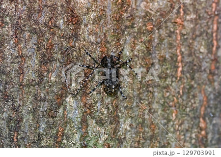 生き物 昆虫 カタシロゴマフカミキリ、複雑な模様でカモフラージュ