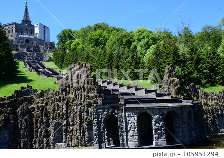 ドイツ、カッセルのヴィルヘルムスヘーエ城公園の噴水