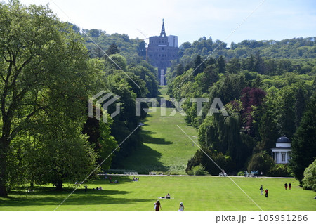 ドイツ、カッセルのヴィルヘルムスヘーエ城公園から見た風景