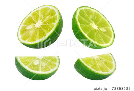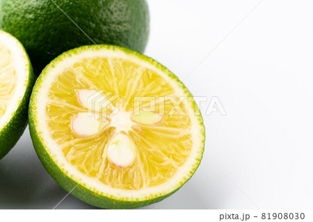 カットフルーツのイラスト。カボスやスダチの爽やかな酸味の柑橘類。