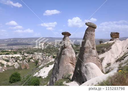 青空の奇岩地帯 ギョレメ 世界遺産 カッパドキア トルコ アジア
