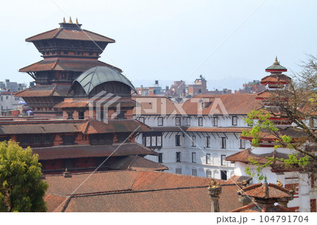 南アジアのネパール世界文化遺産カトマンドゥ盆地 ダルバール広場周辺で見られる寺院