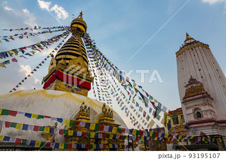 ネパールの世界文化遺産カトマンドゥ盆地 丘の上のチベット仏教寺院スワヤンブナートの仏塔(ストゥーパ)