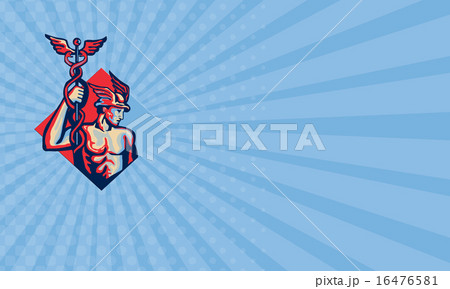 Business card Mercury Holding Caduceus Staff Retro