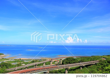 沖縄南城市のニライカナイ橋と海と青空