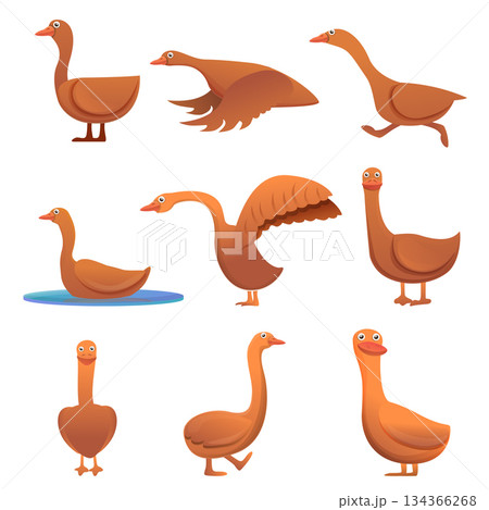 Goose icons set, cartoon style