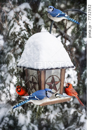 Birds on bird feeder in winter