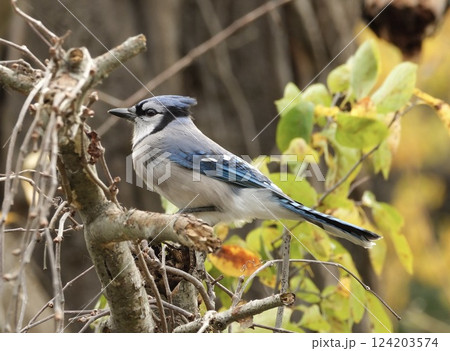木の枝にとまるブルージェイ(アオカケス)