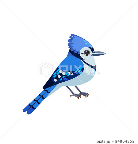 Blue jay is a passerine bird in the family Corvidae. Blue Bird Cartoon flat style character of ornithology, vector illustration isolated on white