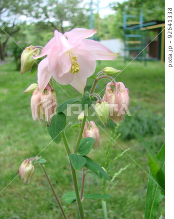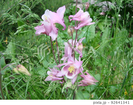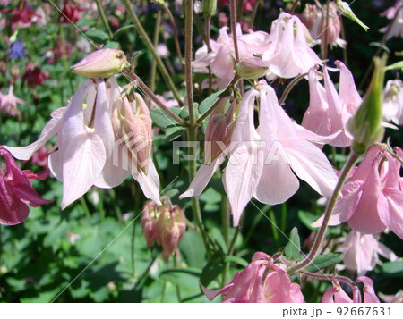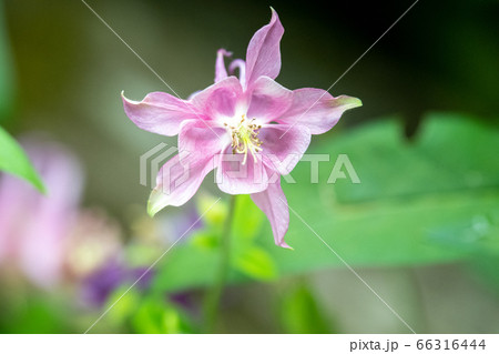 アクイレギアがピンク色の花をつける様子 バンク-バ- ブリティッシュコロンビア カナダ