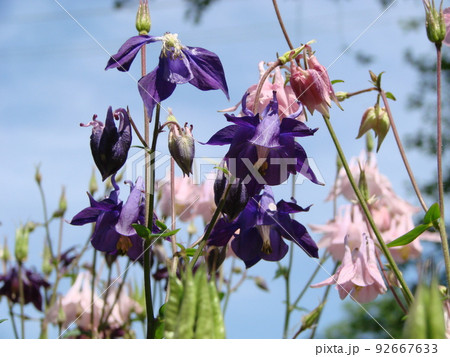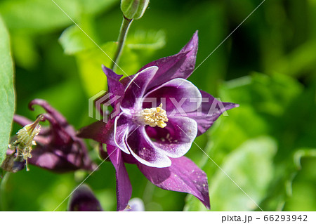 アクイレギアが紫色の花をつける様子 バンク-バ- ブリティッシュコロンビア カナダ