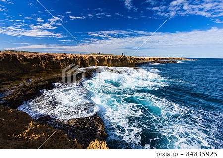 オーストラリア 西オーストラリア州のカナーボン近郊の水を噴き出してるクオバ・ブローホール