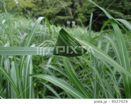 ススキの葉を巻いて作ったカバキコマチグモの巣