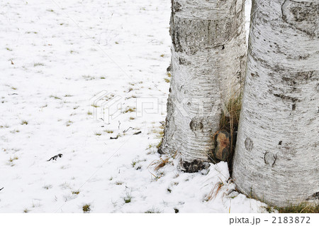 白樺の根元の雪