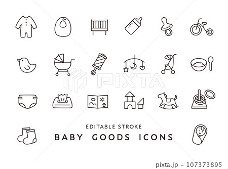 赤ちゃん・ベビーグッズの手描き線画イラスト