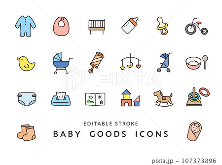 ベビーグッズの手描きイラストセット(カラー/輪郭線なし)