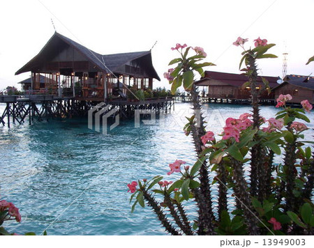 マレーシア・カパライ島の水上コテージと観葉植物
