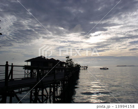 マレーシア・カパライ島の水上コテージの夕暮れ