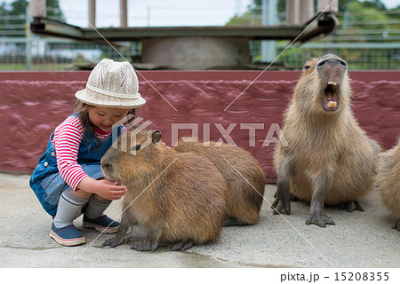 カピバラを撫でる女の子