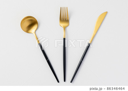 フォークとナイフとスプーンの手描き風の線画イラスト