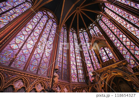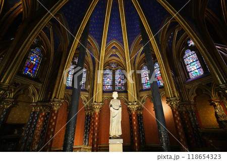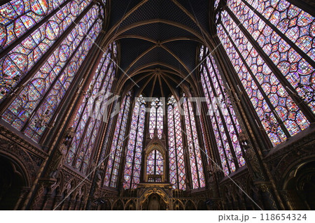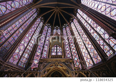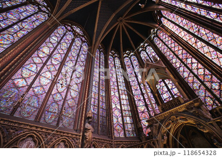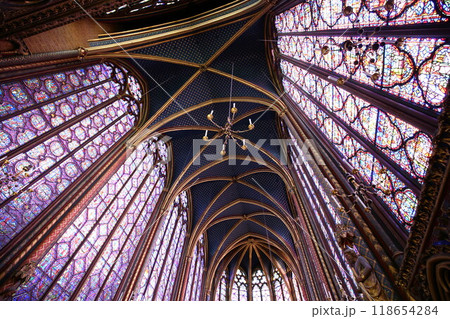 世界遺産サント・シャペルのステンドグラスと天井