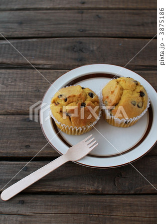 手作りのチョコチップ入りのしっとりカボチャマフィン
