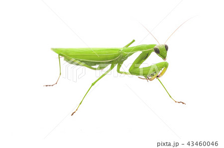 Wandering Violin Mantis, Gongylus gongylodes, in front of white background