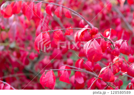 真っ赤に紅葉したニシキギ(錦木)の葉が美しい
