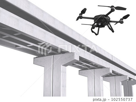ドローンと橋脚、インフラ点検(3DCGイメージ)