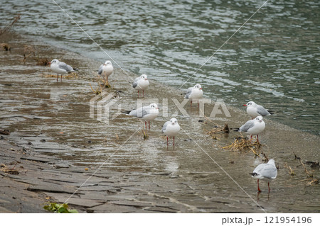 琵琶湖畔に集まるユリカモメの群れ 滋賀県大津市