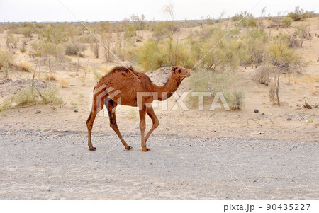 中央アジア トルクメニスタン カラクム砂漠 ヒトコブラクダ 幼獣