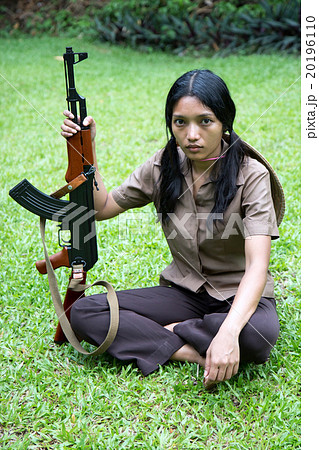 Asian woman armed