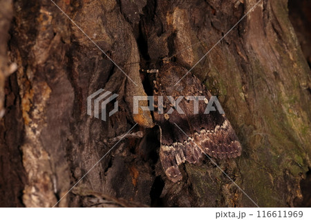 生き物 昆虫 オオシマカラスヨトウ、夜行性で昼間は木の割れ目や樹皮の隙間などに潜んでいるようです